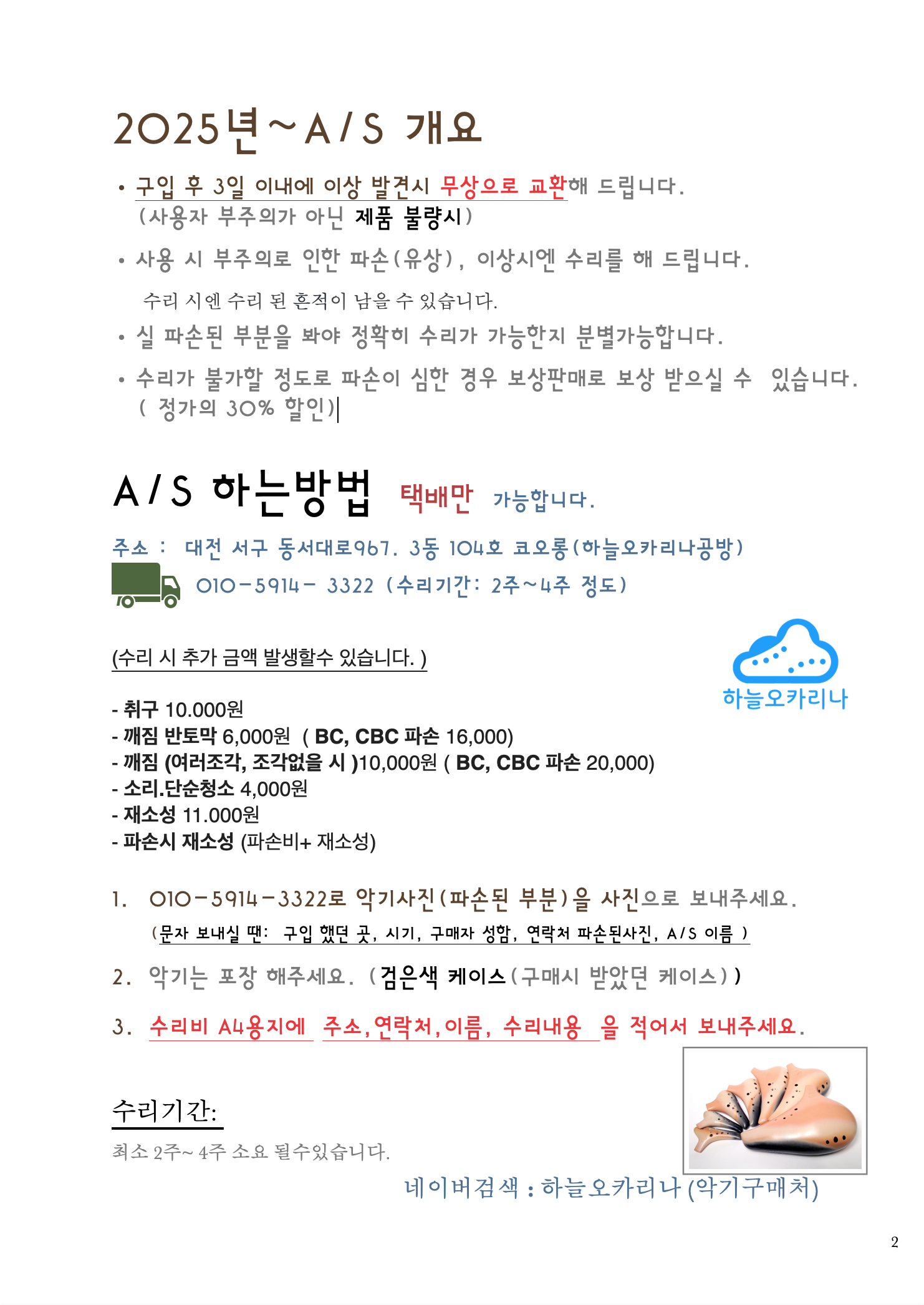 평생 보증! 하늘오카리나의 약속입니다.